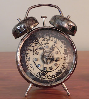 The clock is inked with about 4 alcohol inks. Here is a front view and a side view. The clock face is a Memory Box die and stamp. The spider web and spider are also a Memory Box die.