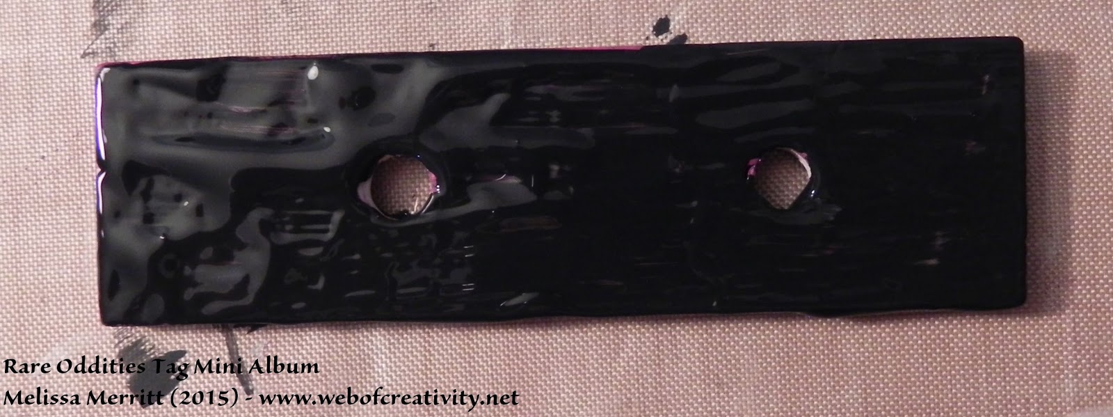 Lastly, add 1 really thick layer of black paint, which means put a gob of paint on your paint brush.  The reason behind that is you don’t want to keep going back and forth with your paint brush, you are essentially painting over the glue.  You don’t want to mix the glue in the paint.  Let dry completely on its own, do not use a heat gun.