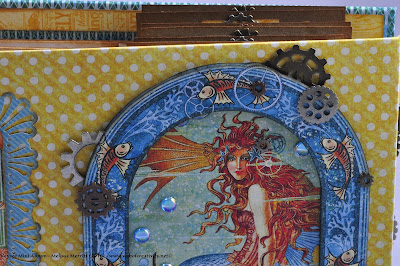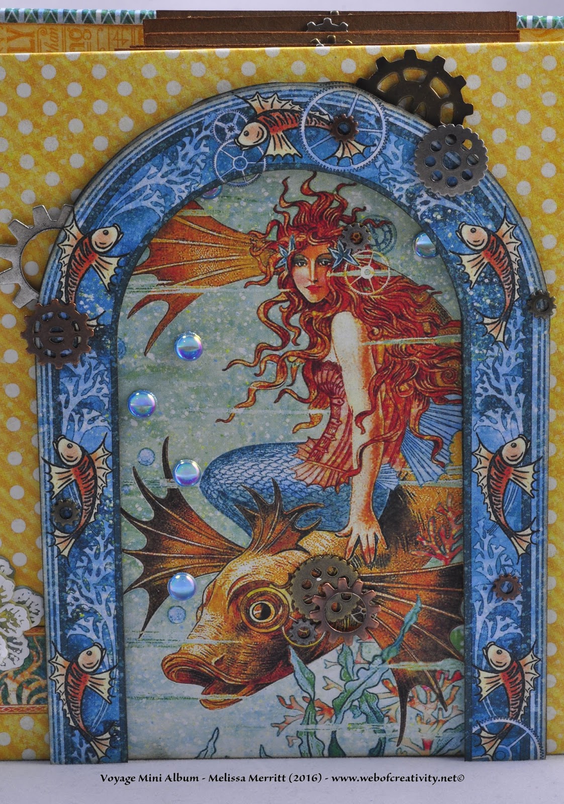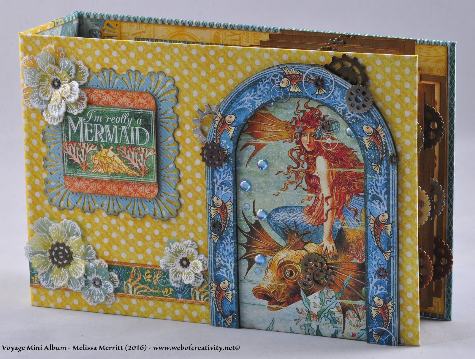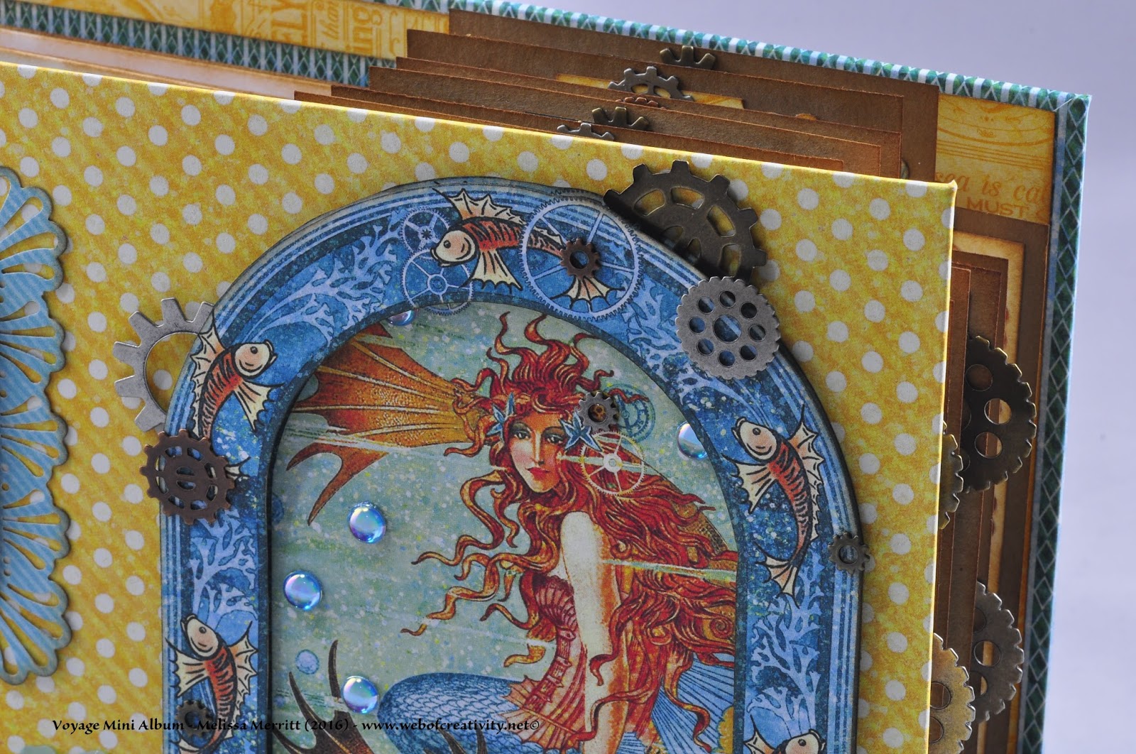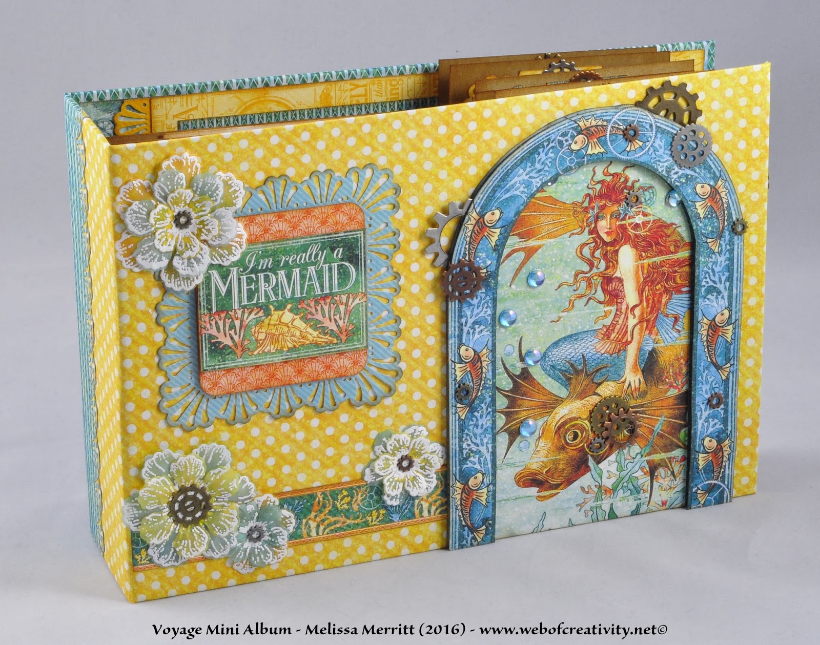 The project is Voyage Mini Album using Graphic 45 Voyage Beneath the Sea paper collection. I love this paper collection because it has a steampunk flair to it. The Kits are available now, and the tutorial will be available in a few days. I have a preview video done, it is at the end of this post. I am finishing up the page construction video and that will be posted when the tutorial is posted.