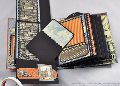 This album is called City Travels Mini Album using Graphic 45 Cityscape papers. I have kits for this project, which are already up and under the “Kits/Shop” tab above. The tutorial should be up this weekend (hopefully). I really like this album with the pocket pages and flaps, and how the binding is apart of the page. Check out the pre-view video at the end of this post. Also, as always, I will have a page construction video, which I have been playing around with fast forwarding. I first did the page construction part and then I did the matting part, but put it on fast forward so the video can be shorter. Let me know which way you like it best. With OR without the fast forward. Wait until you see the video first, then let me know.