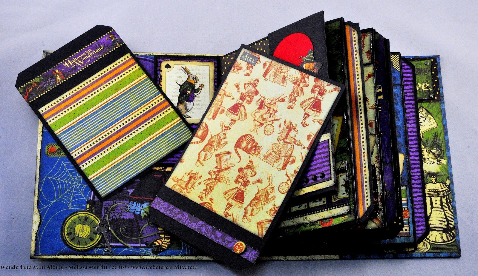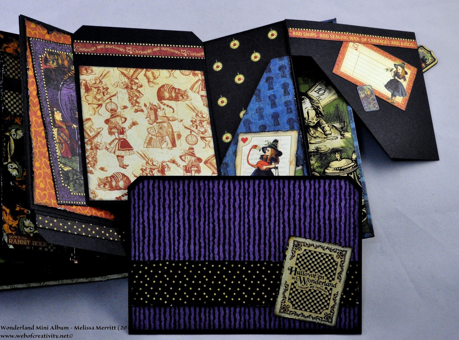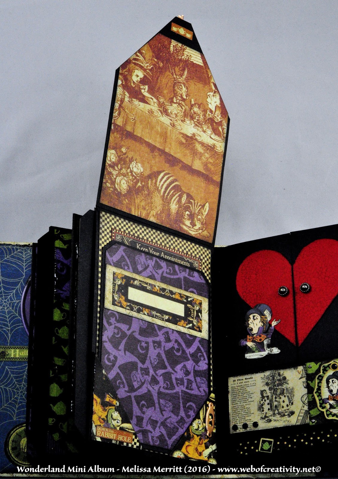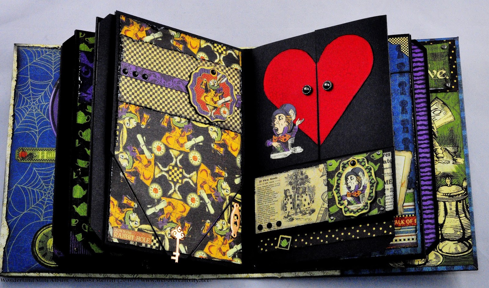 I finished all the pages and tags for the Wonderland Mini Album.  My previous posts and videos did not have all the pages finished.  Below are pictures of every page and a video of the completed album.