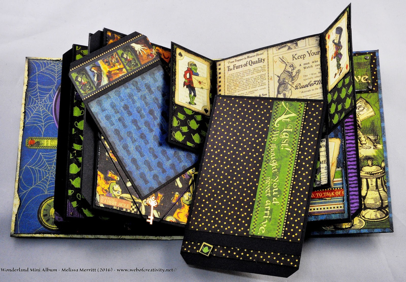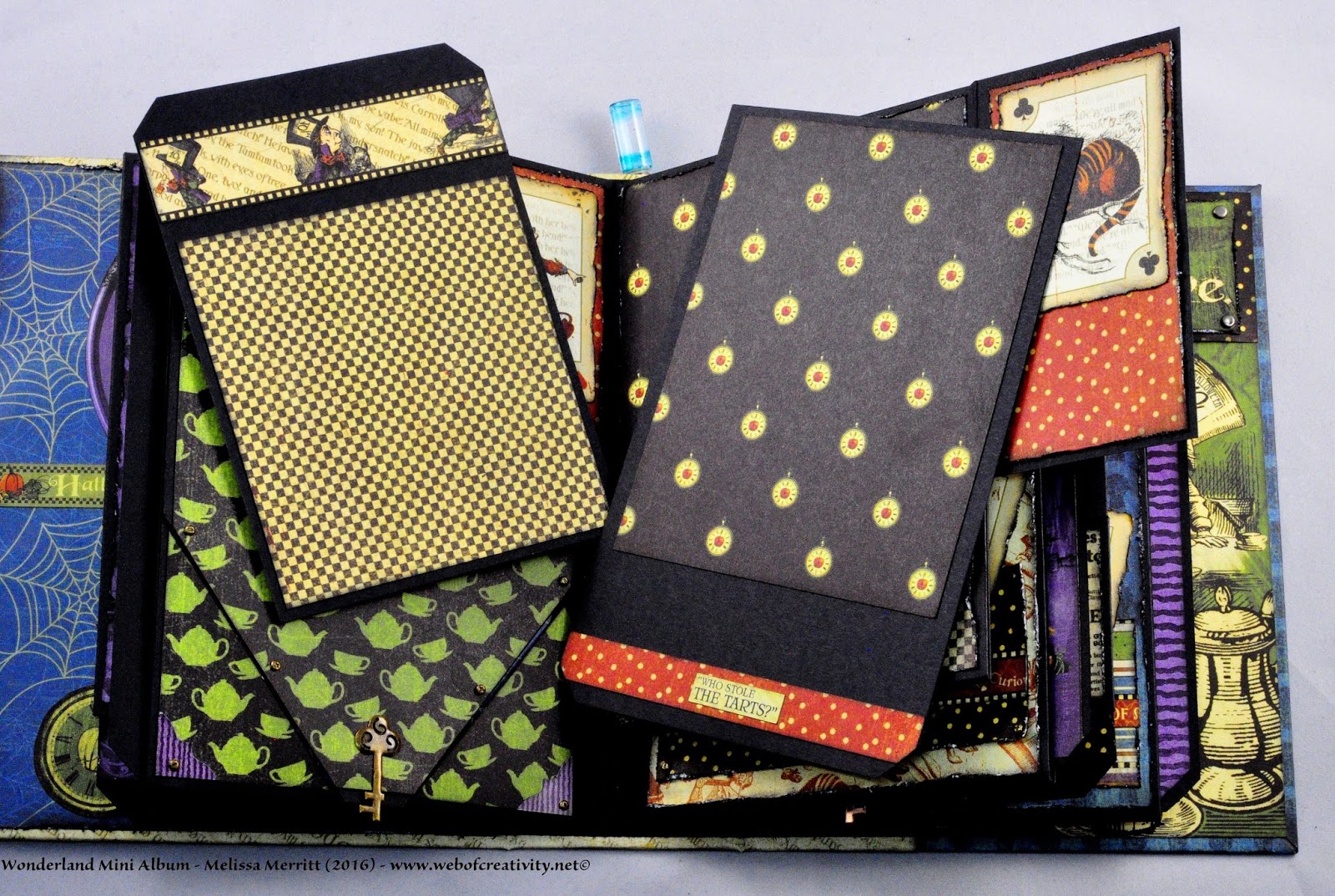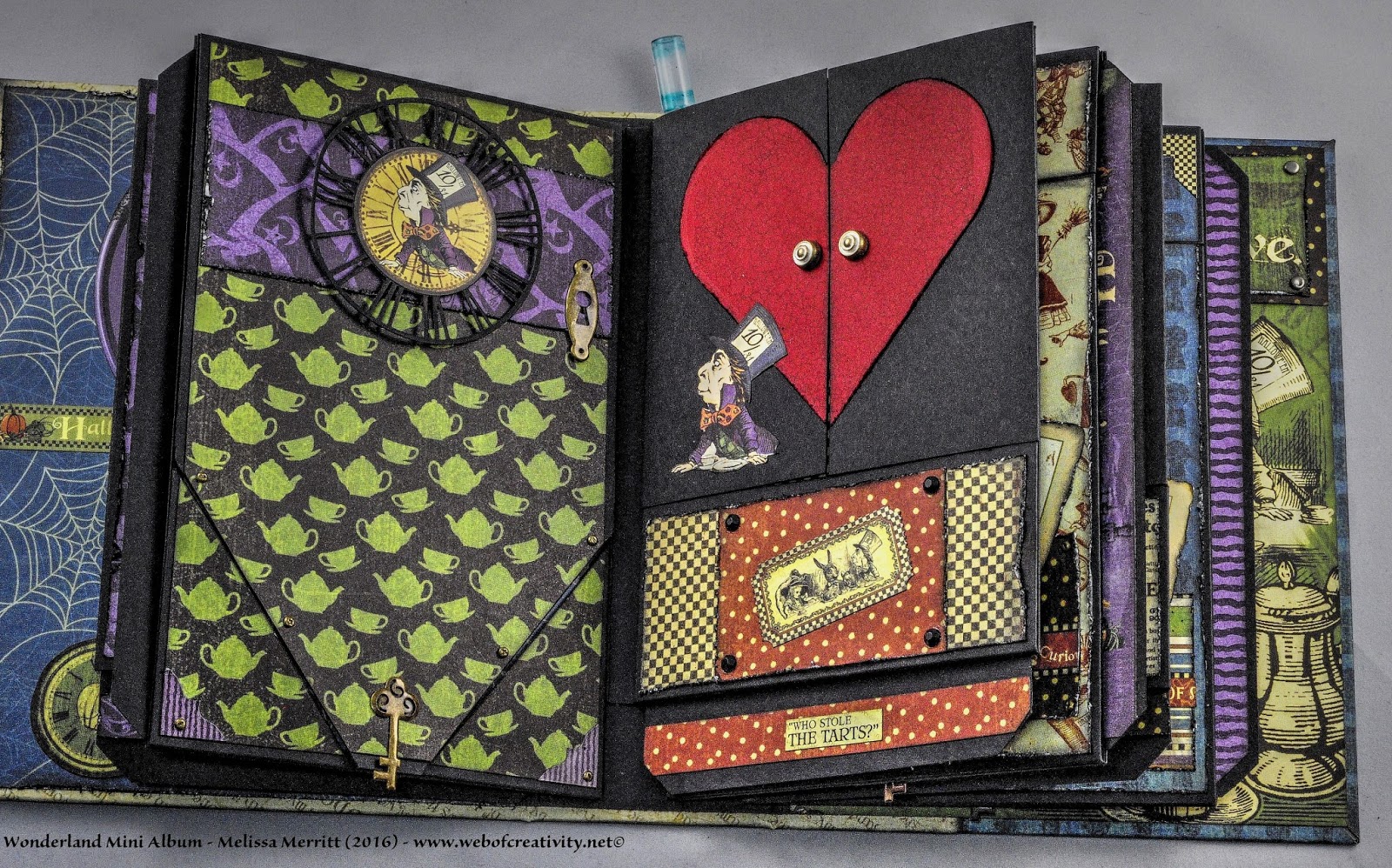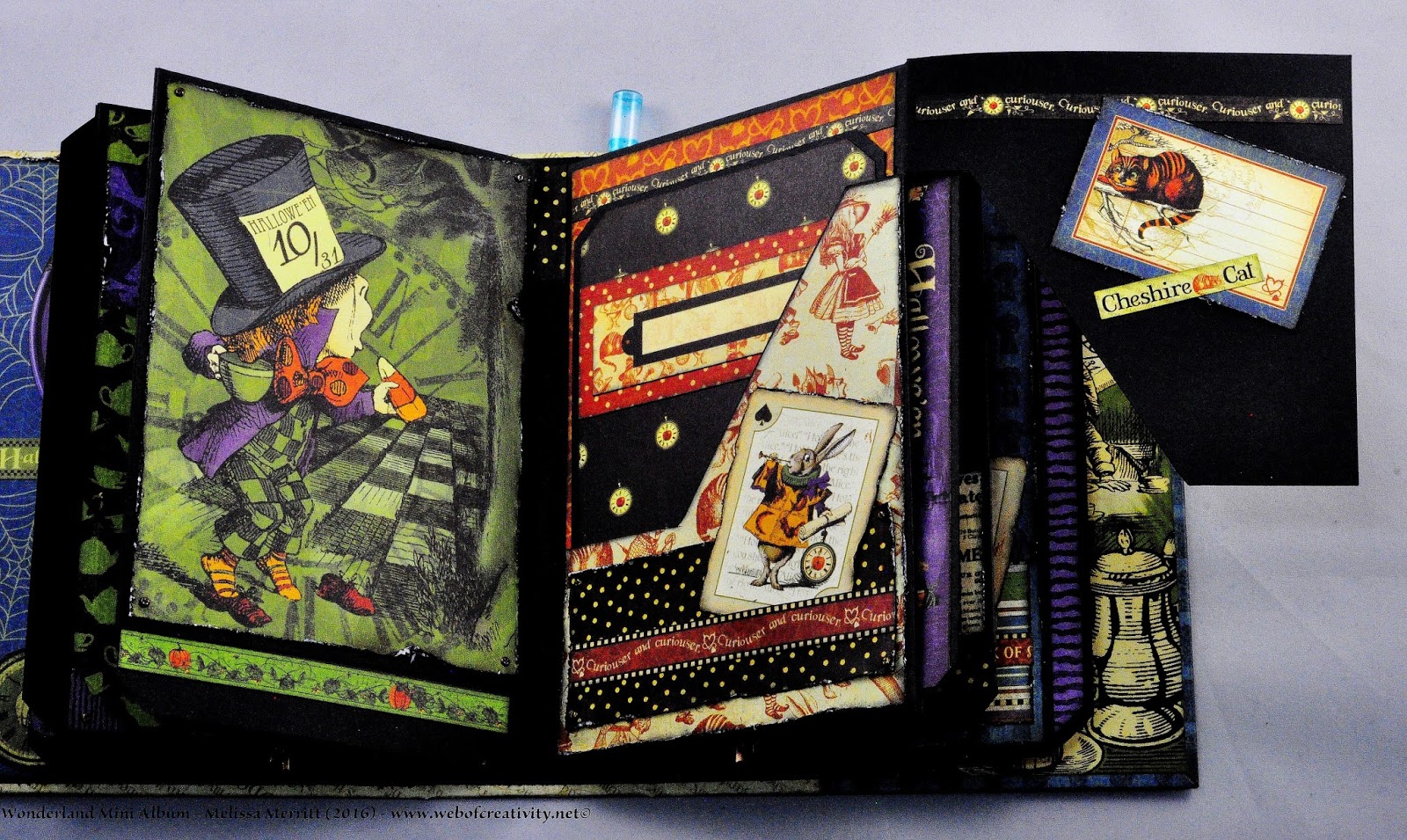 I finished all the pages and tags for the Wonderland Mini Album.  My previous posts and videos did not have all the pages finished.  Below are pictures of every page and a video of the completed album.