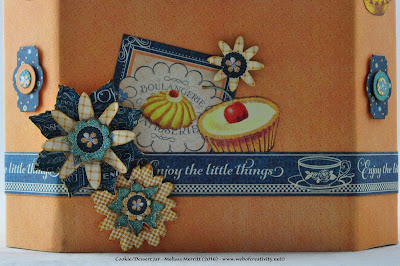 NOTE: The mini albums are only matted with minimal decorations, I haven’t put the final touches on them. I fussy cut a lot of the flowers and desserts from the papers and I have a sticker sheet to use also. When I’m done decorating I will add another post with the finished album.