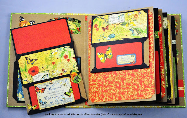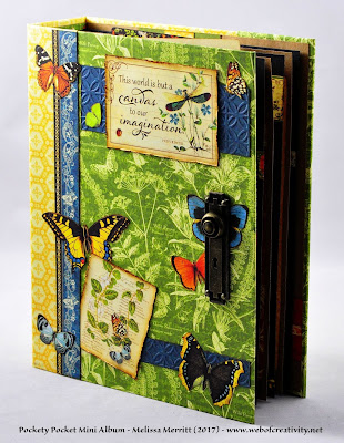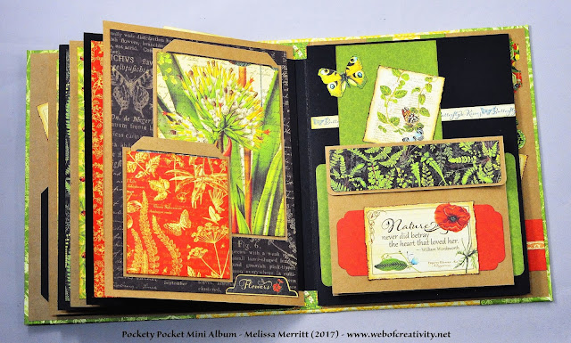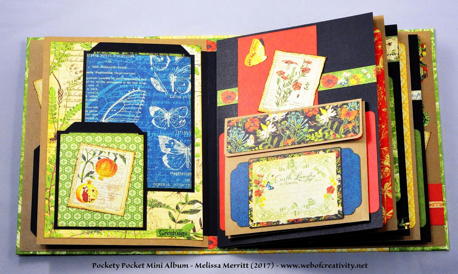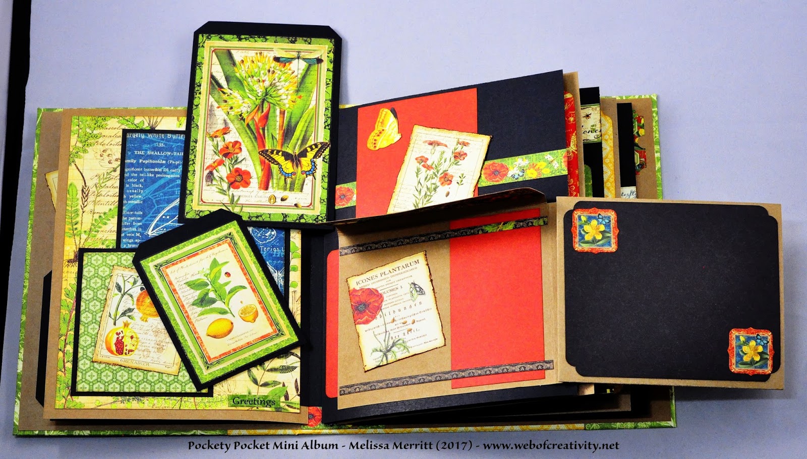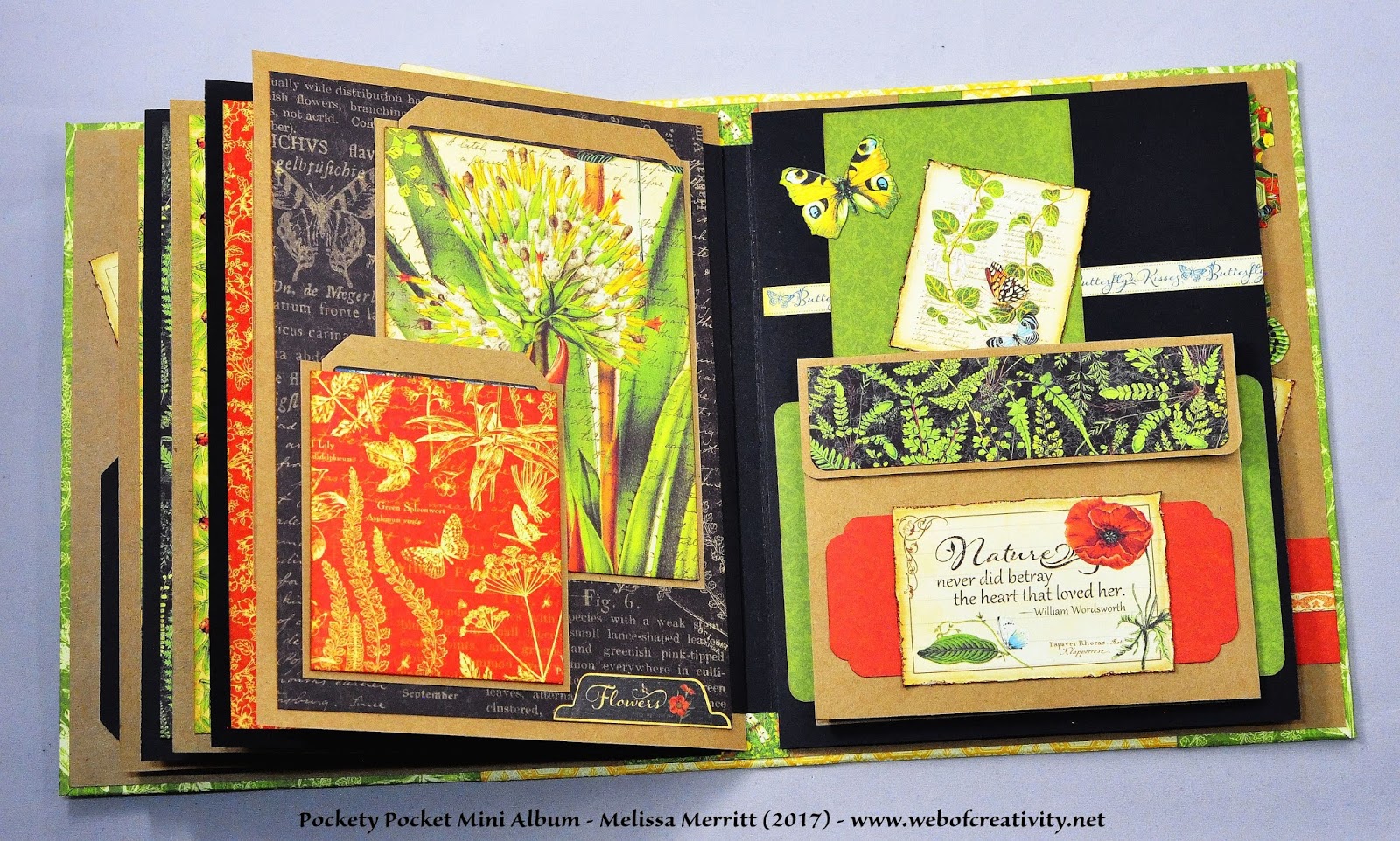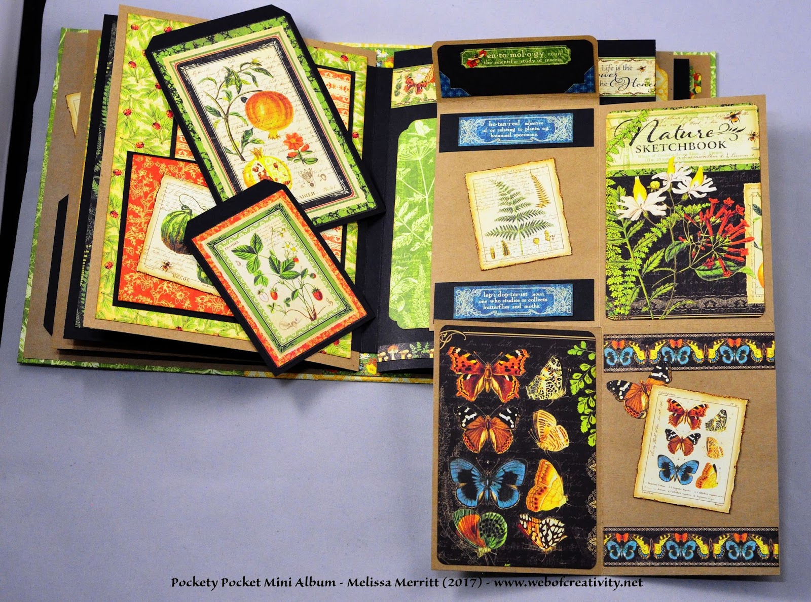This album is called “Pockety Pocket Mini Album” and it is a 7 1/2 x 9 3/4″ album with 4 different pocket page styles. The tutorial and construction video will have directions on making each page. I used Graphic 45 Nature Sketchbook paper collection. Kits will have this paper collection in them and can be purchased now, click HERE to be directed to the Kit or click on the Kit/Shop tab above.